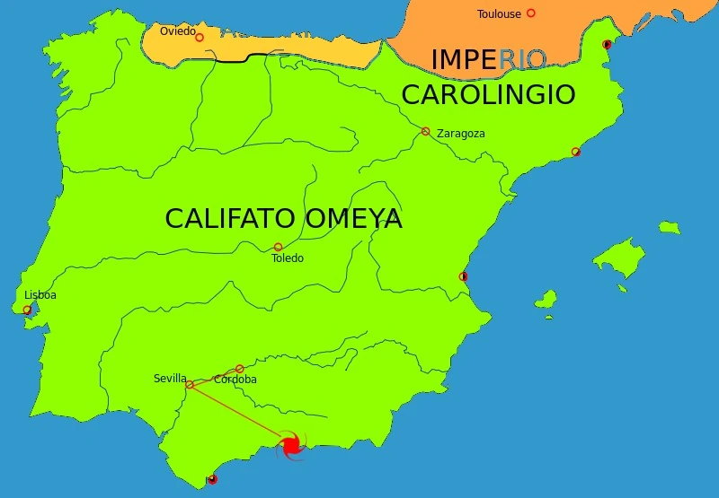 Âgé d'à peine vingt-six ans, Abd al-Rahman, est enfin parvenu au terme d'un long voyage à atteindre al-Andalus. Le jeune Rahman, accompagné de son fidèle homme de confiance, Badr, débarque à Sexitana de Almuñécar, le 14 août 755[23].