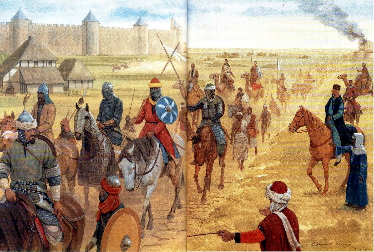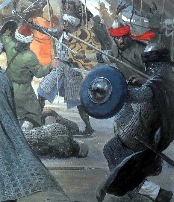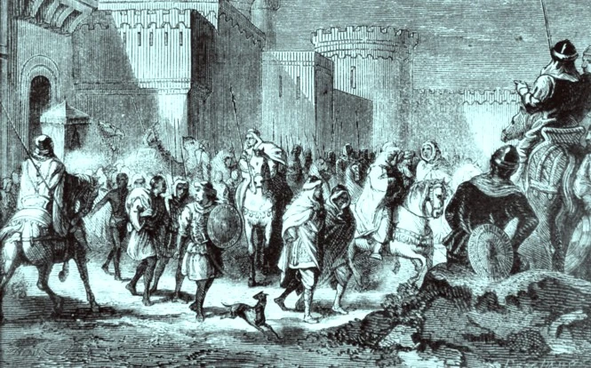 Siège d'une ville par des guerriers francs.