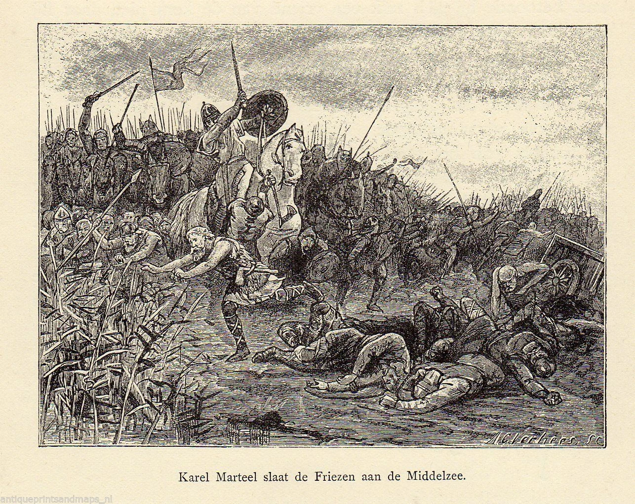 Charles Martel envahit facilement la Frise et annexe ce territoire. La résistance est si faible que Charles Martel non seulement annexé la Frise Citerior, au sud du Rhin. Mais il traversez le Rhin et annexe la Frise, sur les rives de la rivière Vlie. Il intronise évêque Willibrord dans son siège d'Utrecht.