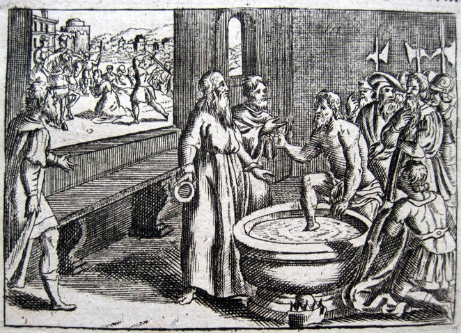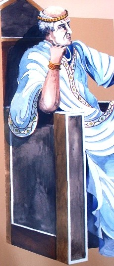 Radbod, roi des Frisons, que l'on voit là refusant le baptême, est l'allié des Neustriens.