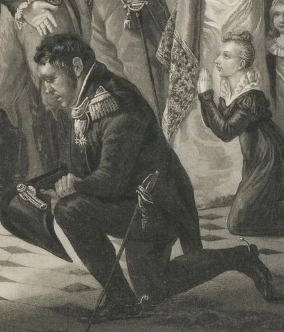 Louis XVIII à Lille, en 1815, et au premier plan Auguste de Rambaud, en uniforme de Commissaire des Guerres.
