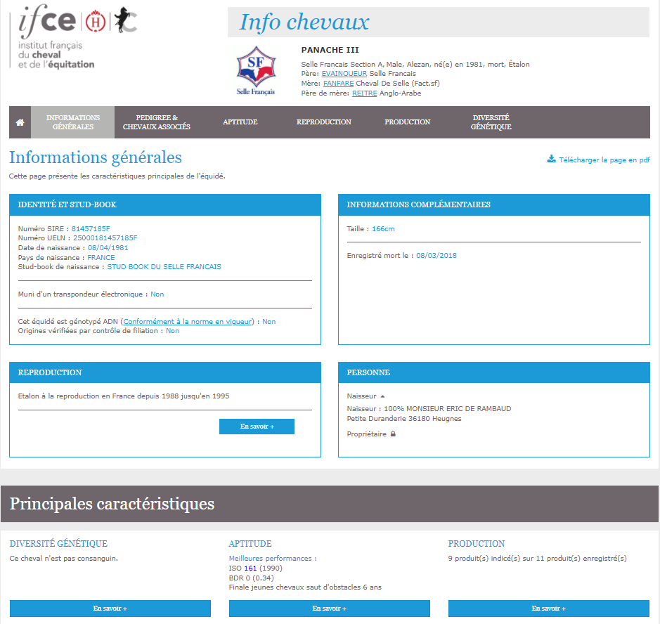 DONA INES GLAT Selle Français section A 31 ans Bai Brun Panache III x INES DE CASTRO A
