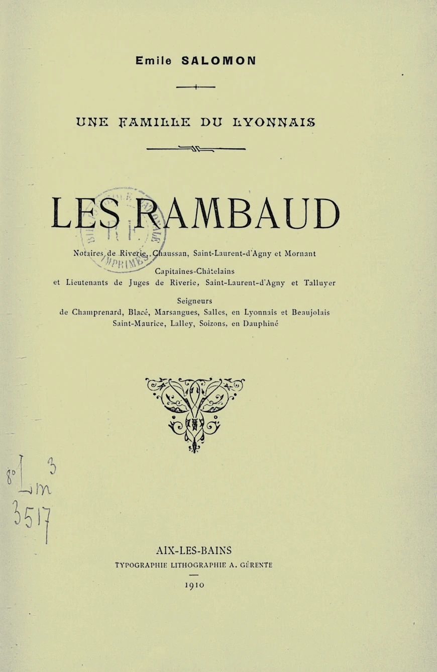 Une Famille du Lyonnais. Les Rambaud,... d'Émile Salomon (1910).