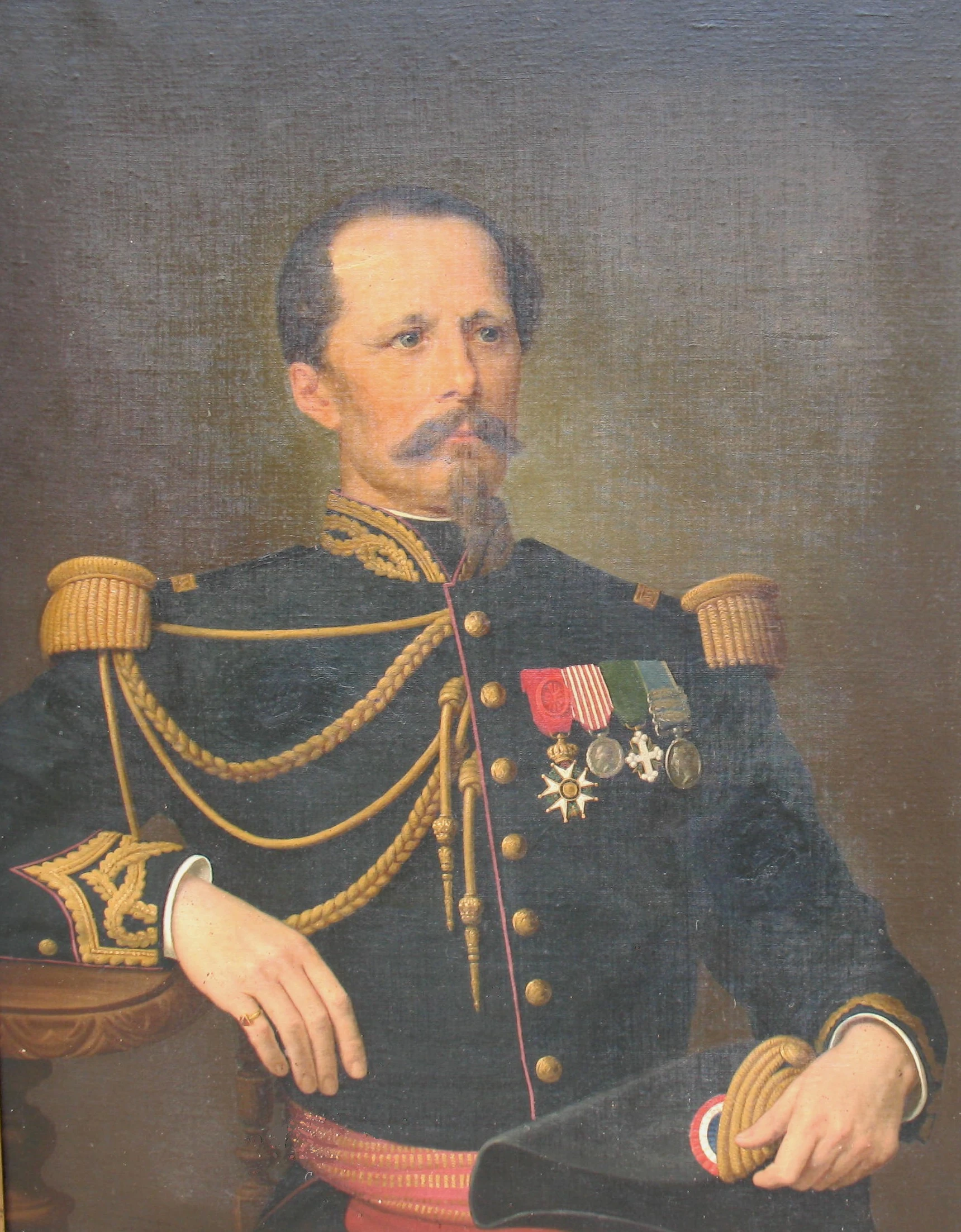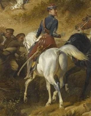 Georges de Rambaud, père d'Ernestine de Rambaud et Ernest de Rambaud, polytechnicien, est au premier plan sur ce tableau en uniforme de Commissaire des guerres[1].